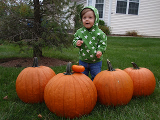 Grampy and Grammy came with a special delivery for Bentley today ~ his Halloween pumpkin! Since he is being a dinosaur, his pumpkin this year is a dino/monster...